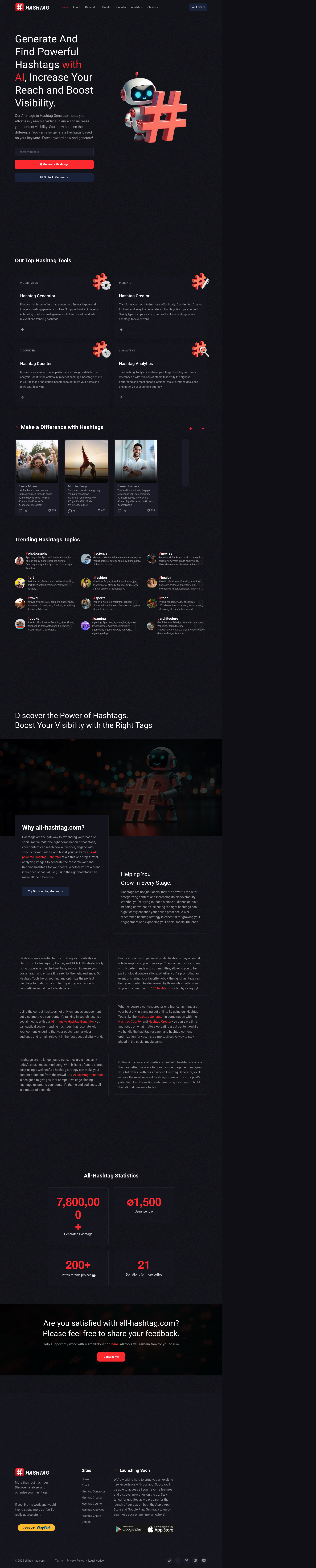 Generate powerful hashtags with AI using All-hashtag to boost your reach and visibility on social media effortlessly.