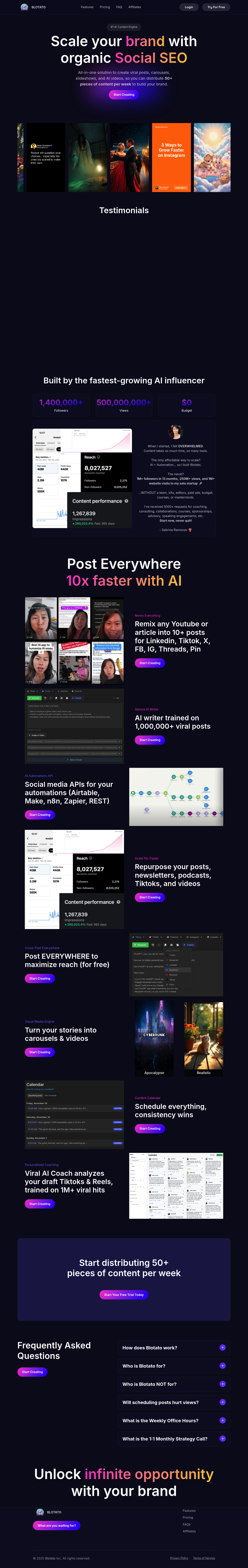 Blotato: the AI content engine to scale your brand with organic Social SEO. Create viral posts, carousels, videos, & more!