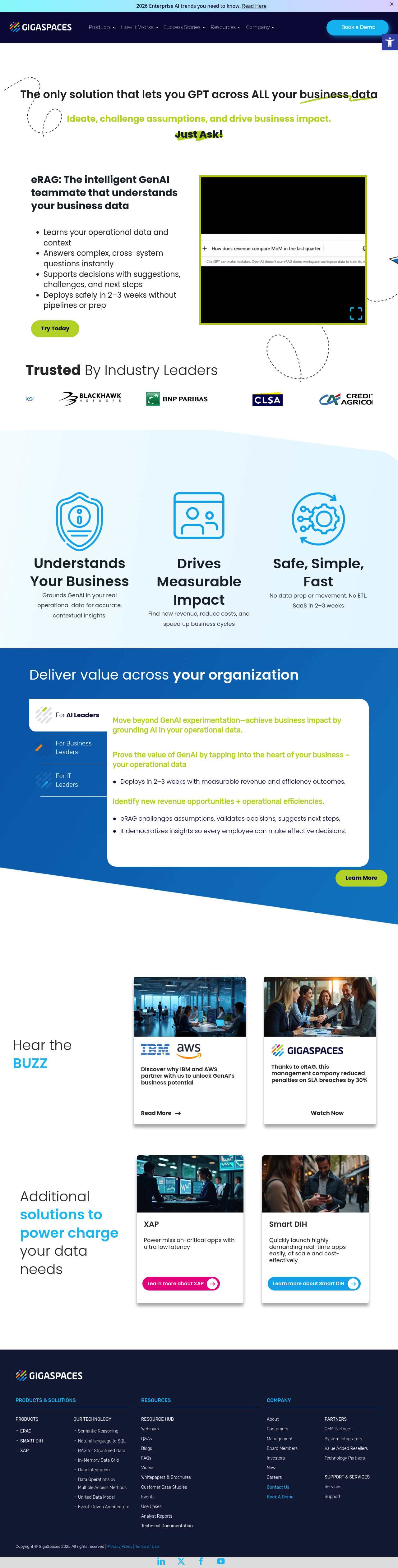 GigaSpaces eRAG unlocks the power of GPT across all your business data sources, providing AI-powered insights and enhanced decision-making.