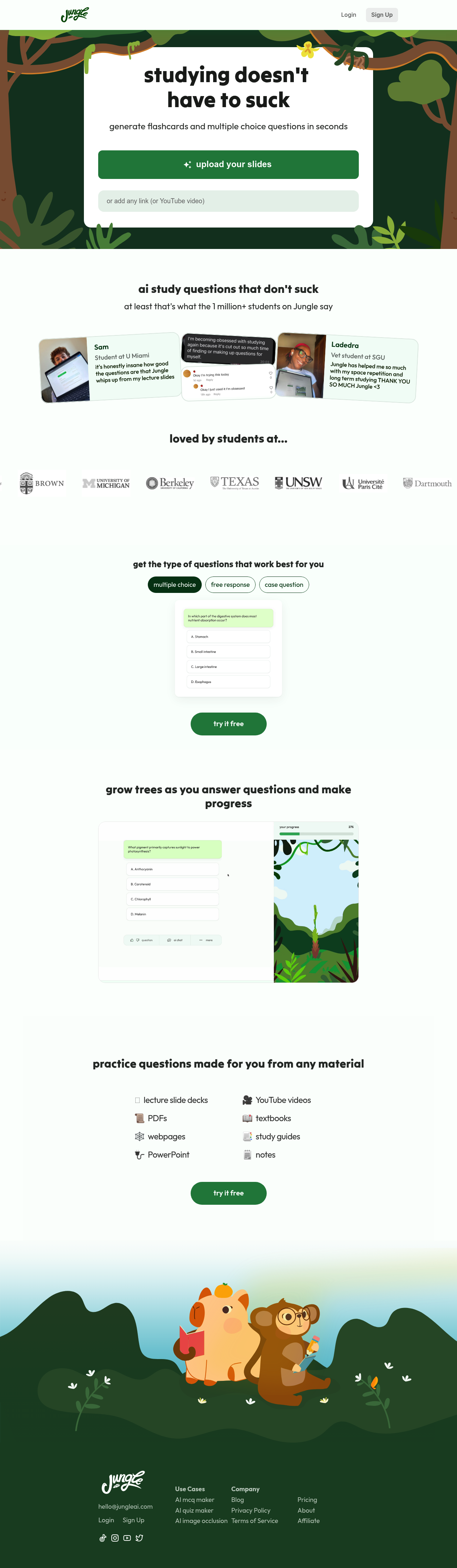 Jungleai: Ace your exams! Upload slides, get AI-powered flashcards & practice questions instantly. Study smarter, not harder!