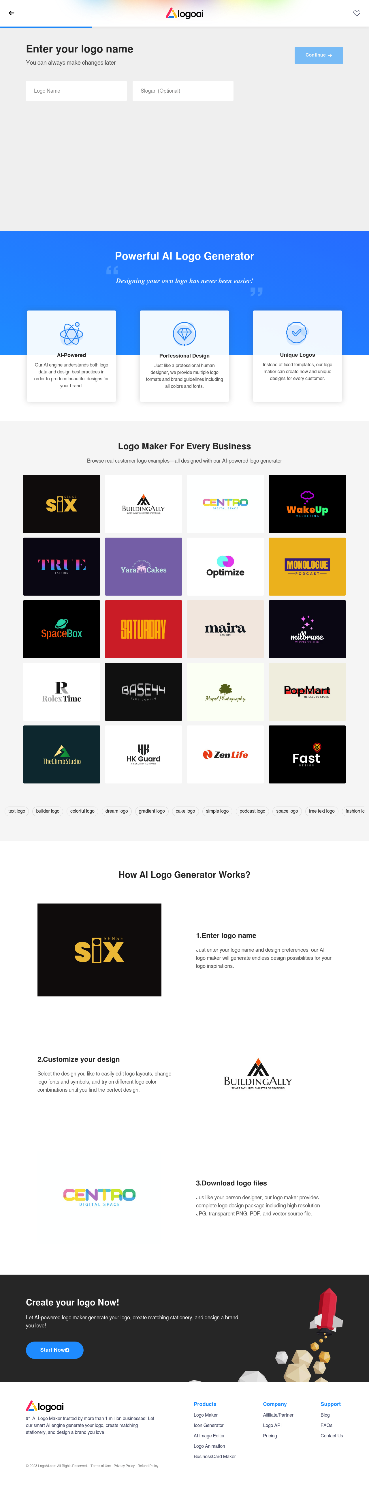 Create a unique and professional logo for your brand in minutes with LogoAI's powerful AI-powered logo generator. Get multiple formats and brand guidelines!