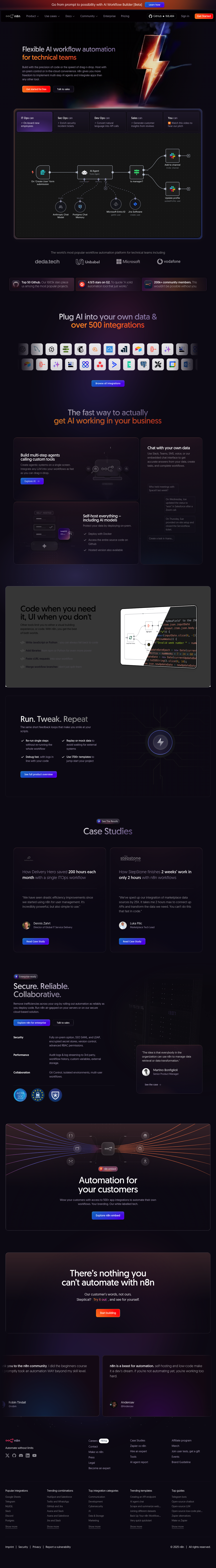 Automate complex workflows with n8n, the flexible AI workflow automation platform for technical teams, offering both code and drag-and-drop options.