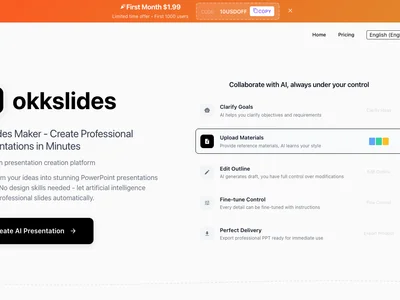 okkslidesv1.2.0 works by analyzing the text input provided by the user. It then automatically generates slides with appropriate titles, content placement, and visual elements. Key features include customizable templates to match branding, an image library for adding visuals, and the ability to edit and refine AI-generated slides. Users can also adjust layouts, font styles, and color schemes to personalize their presentations further. The latest version, 1.2.0, includes improved image suggestion algorithms and enhanced support for complex data visualization.