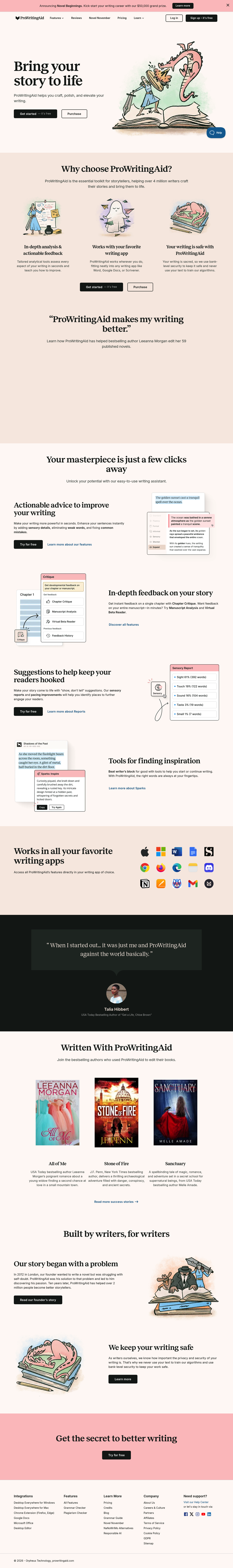 ProWritingAid: Polish your writing with in-depth analysis, actionable feedback, and inspiration to bring your story to life.