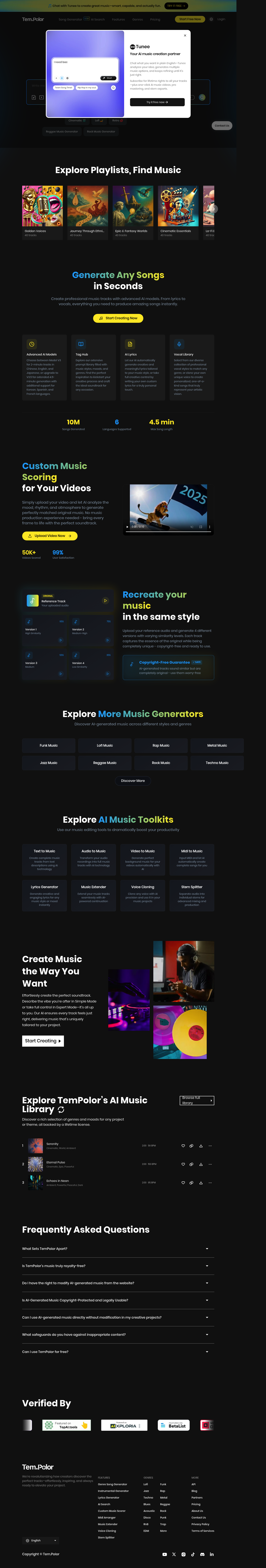 Create AI-generated music in seconds with Tempolor! Generate tracks in various genres, from cinematic to punk, using advanced AI models.