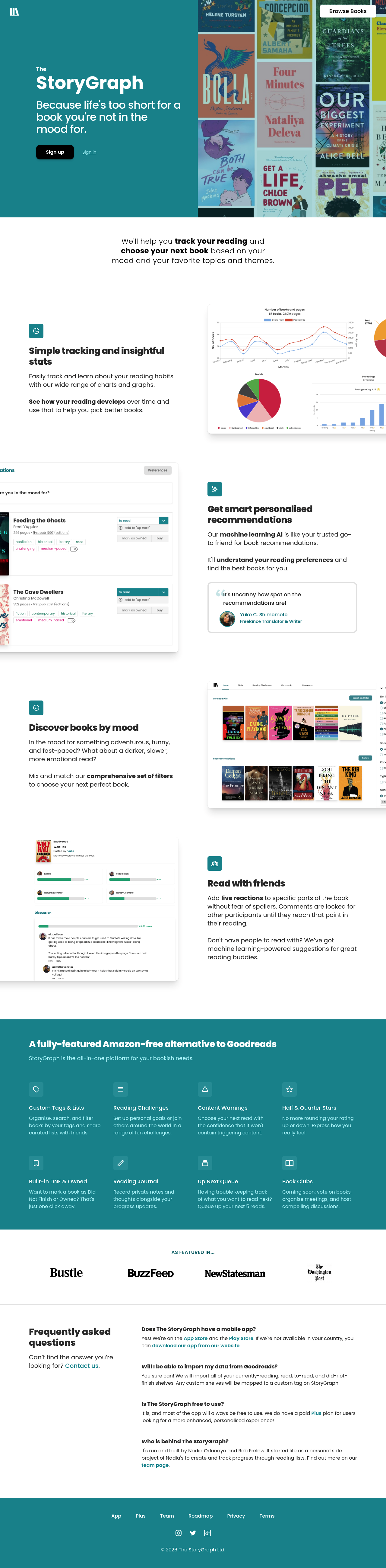 Best for avid readers and book club members who need personalized book recommendations and a platform to track their reading habits and engage in spoiler-free discussions.
